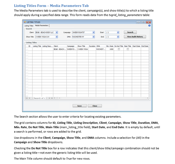 (Design for .NET/C# Desktop App) TV Grid Listing Parameters for Airings